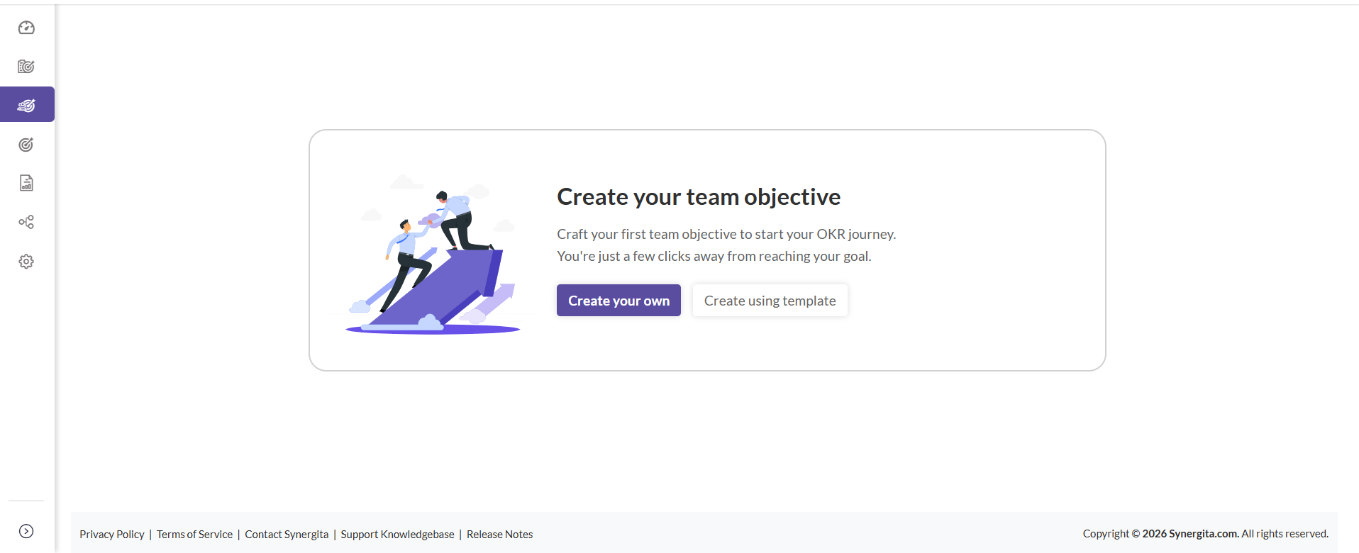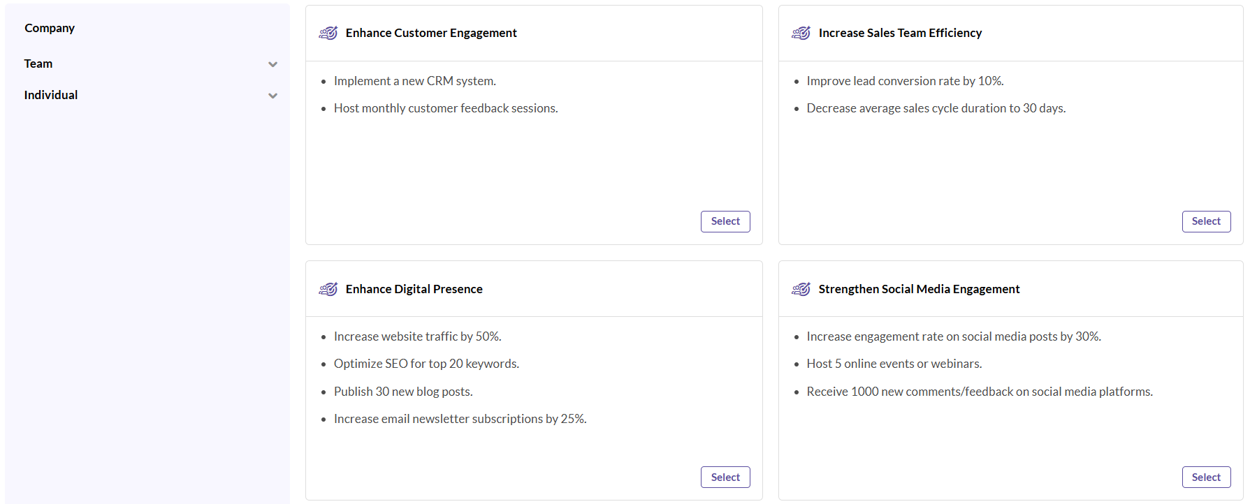 - When there are no objectives in a page, then there is a dedicated button on the screen to access the OKR Templates page.
