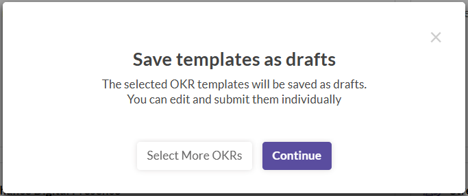- If more OKRs need to be selected, click on Select more OKRs to go back to the template page and select more.